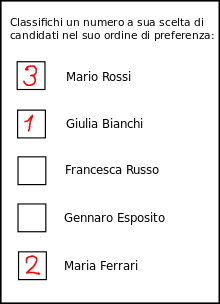 Non fate votare con una croce, fate votare con un numero. Invece di far votare per un singolo candidato, fate ordinare i candidati in ordine di preferenza. Non richiede uno sforzo di molto superiore alla croce e, nel peggiore dei casi, permette a chi vuole di continuare ad usare la croce (che assume finalmente il significato esplicito di “preferisco A su tutti ma sono indifferente agli altri in egual misura”).